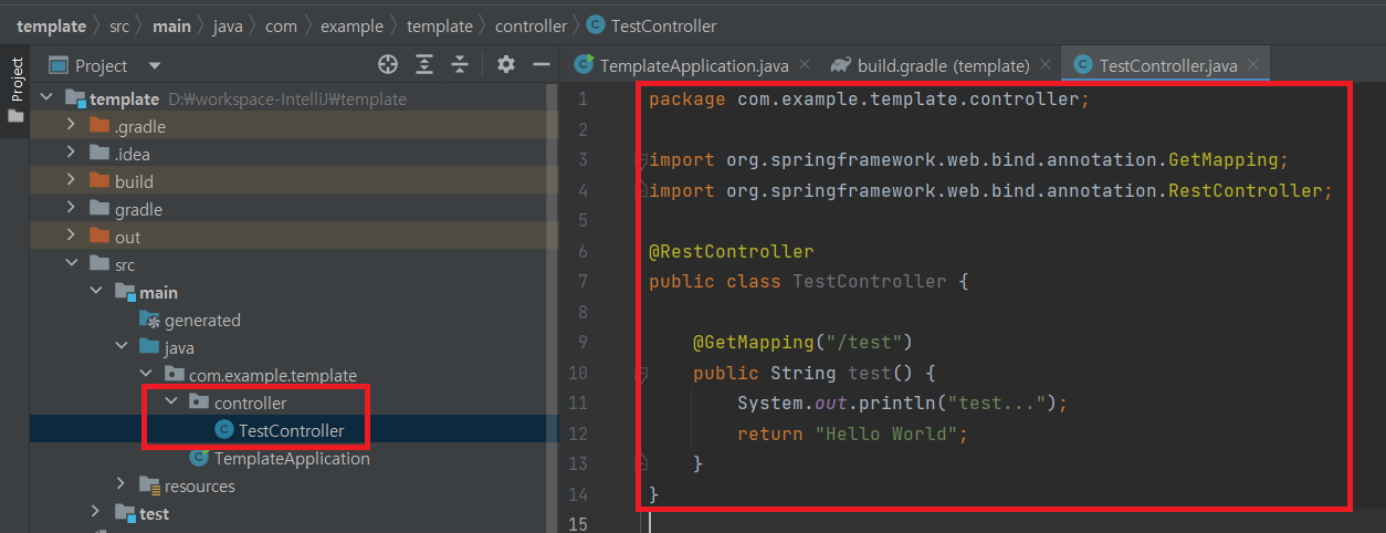 - 패키지 : com.boot.template.controller