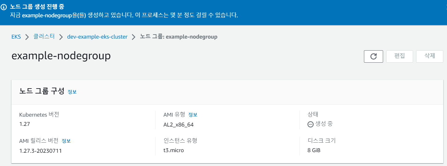 ⑨ EKS NodeGroup을 활성화 하려면 시간이 소요된다.