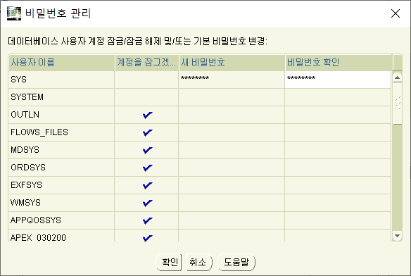 - SYS, SYSTEM 계정은 기본적으로 활성화되도록 한다.