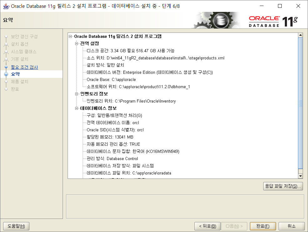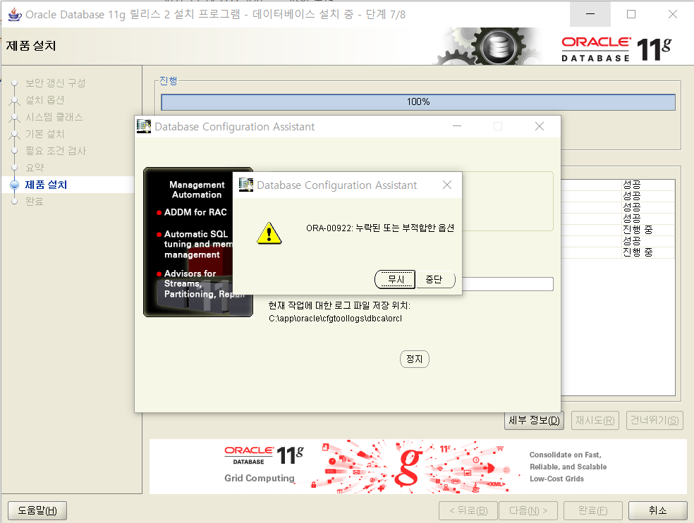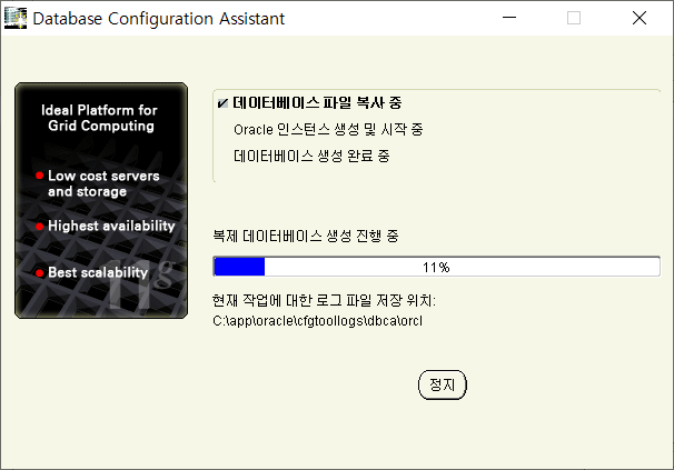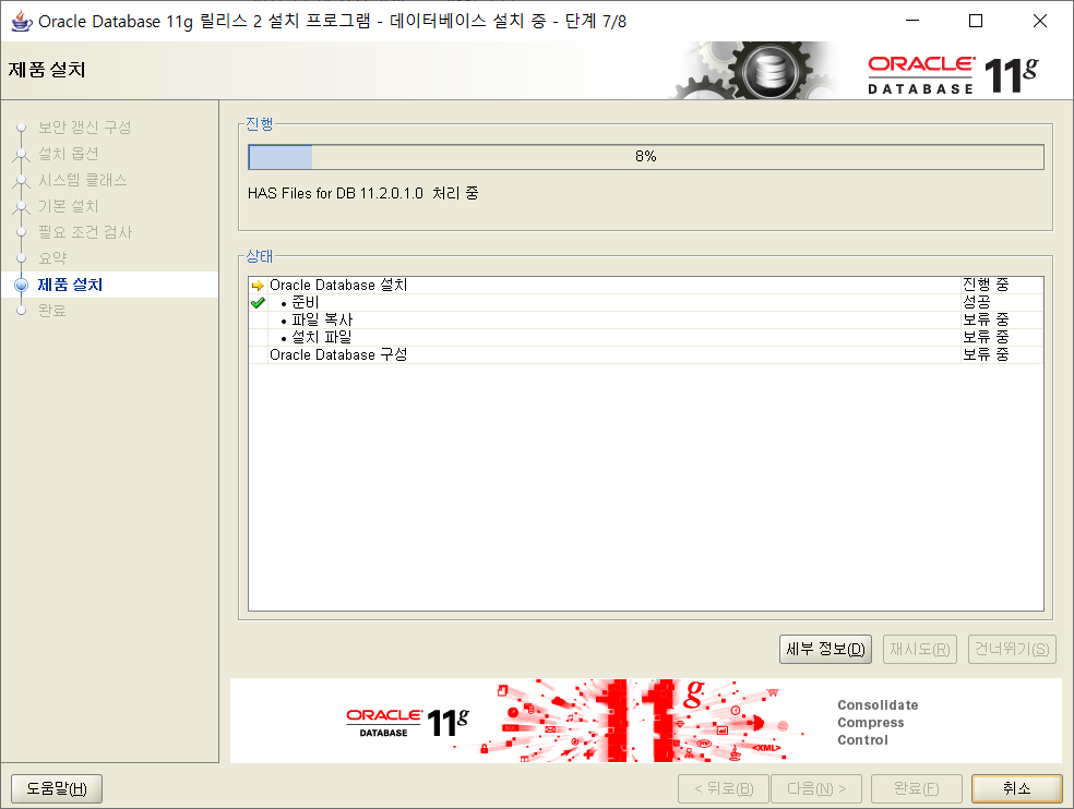⑧ 제품 설치가 완료되면 DB 생성이 시작된다.