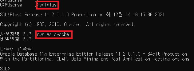 ˙ 윈도우 환경에서 오라클 11g를 설치한다.