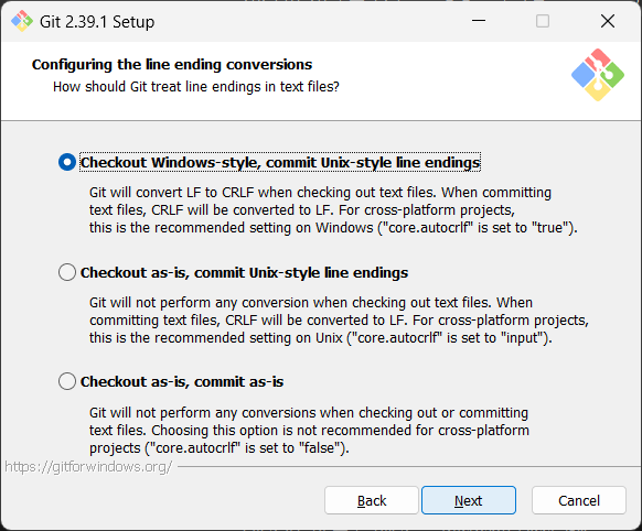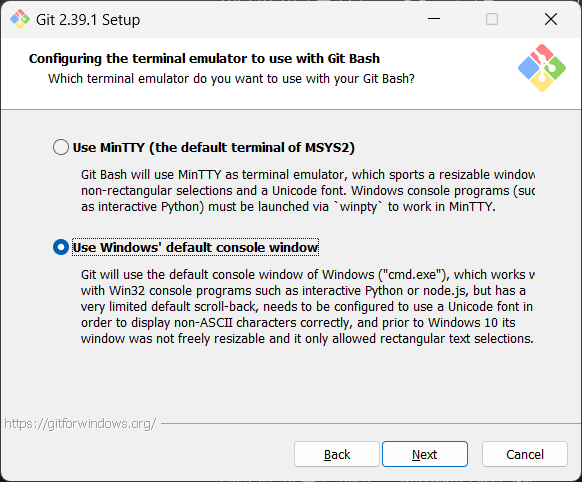 - 윈도우 환경에서 GIT 최신 버전을 설치한다.