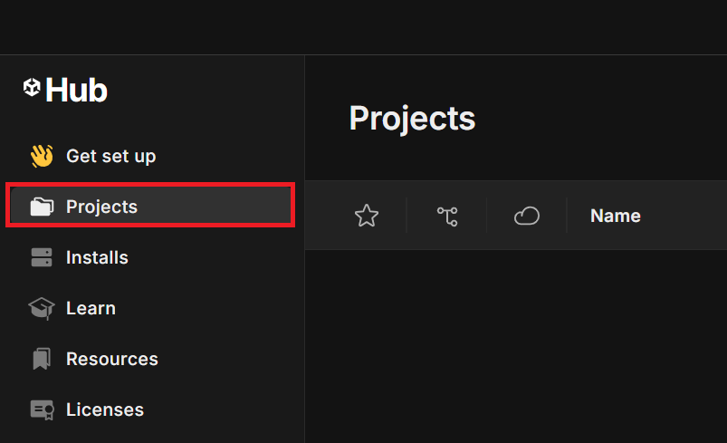 ① Unity Hub의 [Projects] 탭에서 "New project" 버튼을 클릭한다.