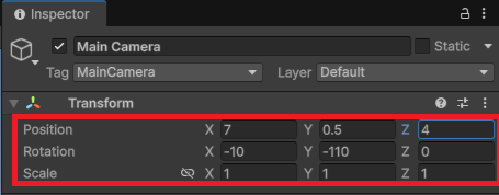 - Rotation: (-10, -110, 0)
