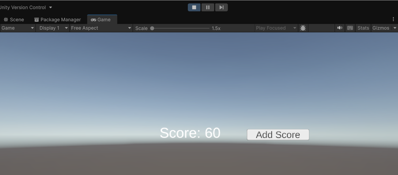 · Add Score 버튼 클릭시, 점수가 증가하여 표시되는 것을 확인한다.