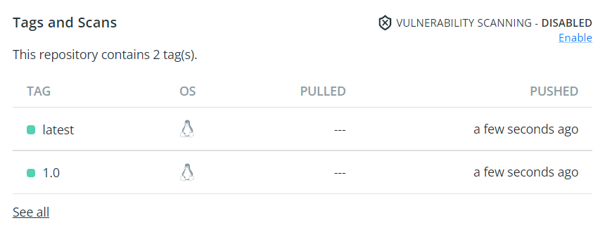 빌드한 docker image가 docker Hub에 push 되었음을 확인