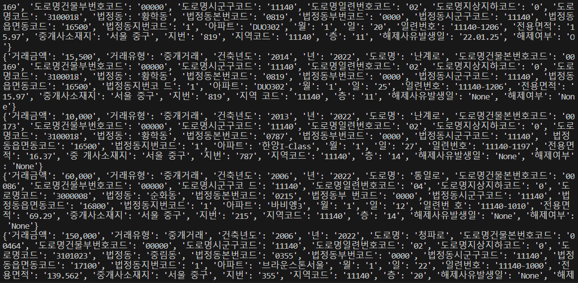 python json 파일 읽기 (국토부 아파트 실거래가 json parsing)