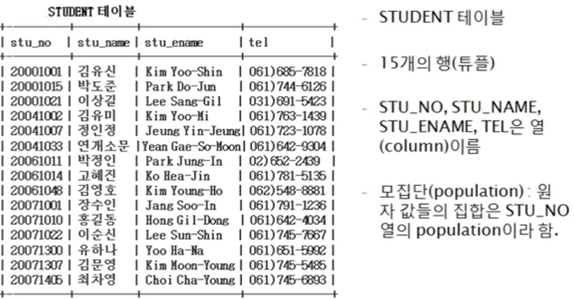 ② 행과 열의 교차점은 원자값(atomic value)라는 오직 하나의 값으로 구성된다.