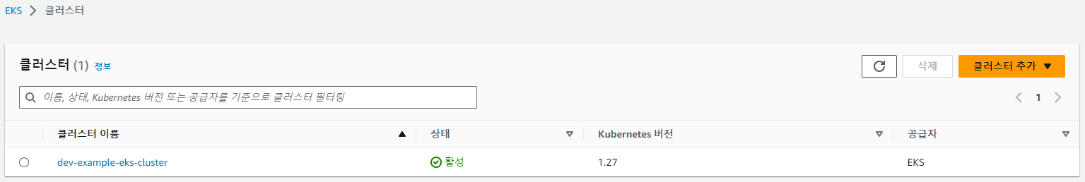 ˙ EKS Cluster가 활성화된 것을 확인한다.