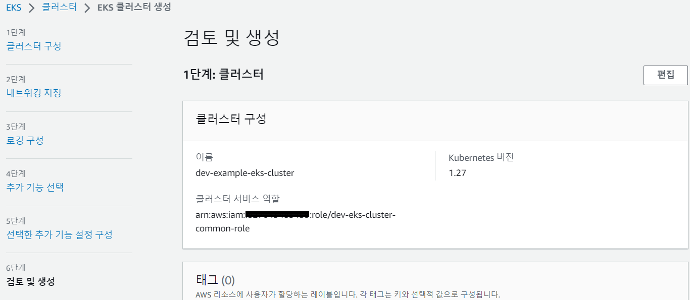 ③ EKS Cluster 이름 / 버전 / 역할 등 구성정보를 입력한다.