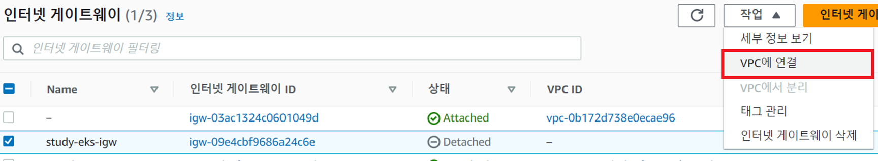 - study-eks-routing3과 IGW 간 연결